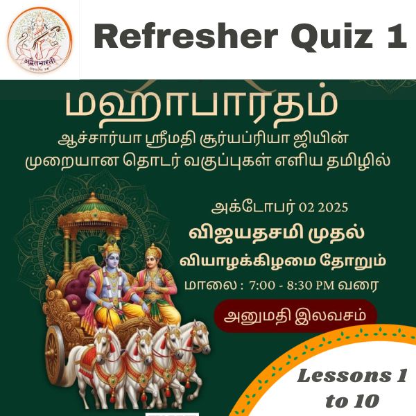 This quiz is based on the ninth class on Mahabharata by Acharya Suryapriya ji at Advaita Bharati.