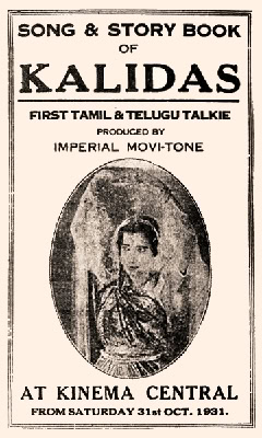 Kalidasa was the first talking movie in Tamil and Telugu. The picture is a poster for the film.