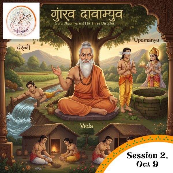 Janamejaya later went to conquer Takshashila. Ayodha Daumya was the Rishi (sage) there. His name may mean “with Iron Teeth” or “one who drinks water.” He had three chief disciples: Aruni, Upamanyu, and Vedaha (or Veda Parashar). Each disciple demonstrated the importance of Guru Bhakti (devotion to the teacher).