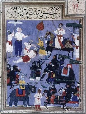 विकिमीडिया की यह दुर्लभ मिनिएचर पेंटिंग ‘तज़किरतुल मुल्क’ से ली गई है, जिसमें युद्ध के बाद रामा राय का सिर काटे जाने का दृश्य दर्शाया गया है।